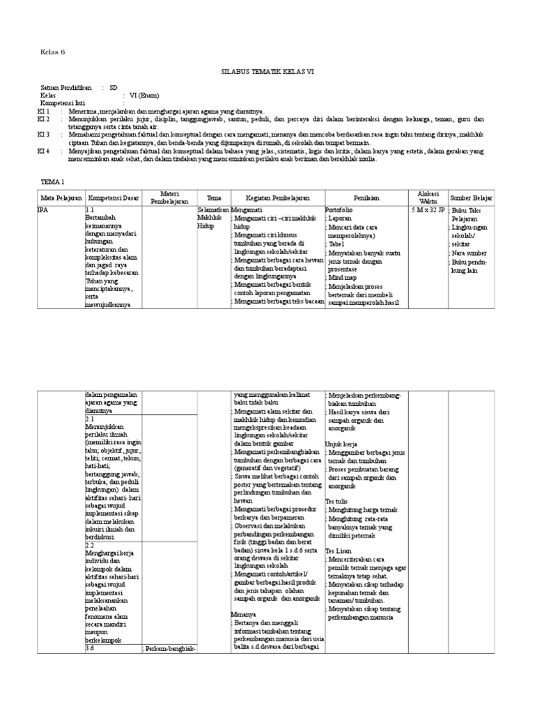 for "Silabus Kelas 4 Tema 6 : Silabus Kelas 6 SD/MI Semester 1 Tahun 2020/2021 - Guru Krebet 3 - Guru Krebet 3"